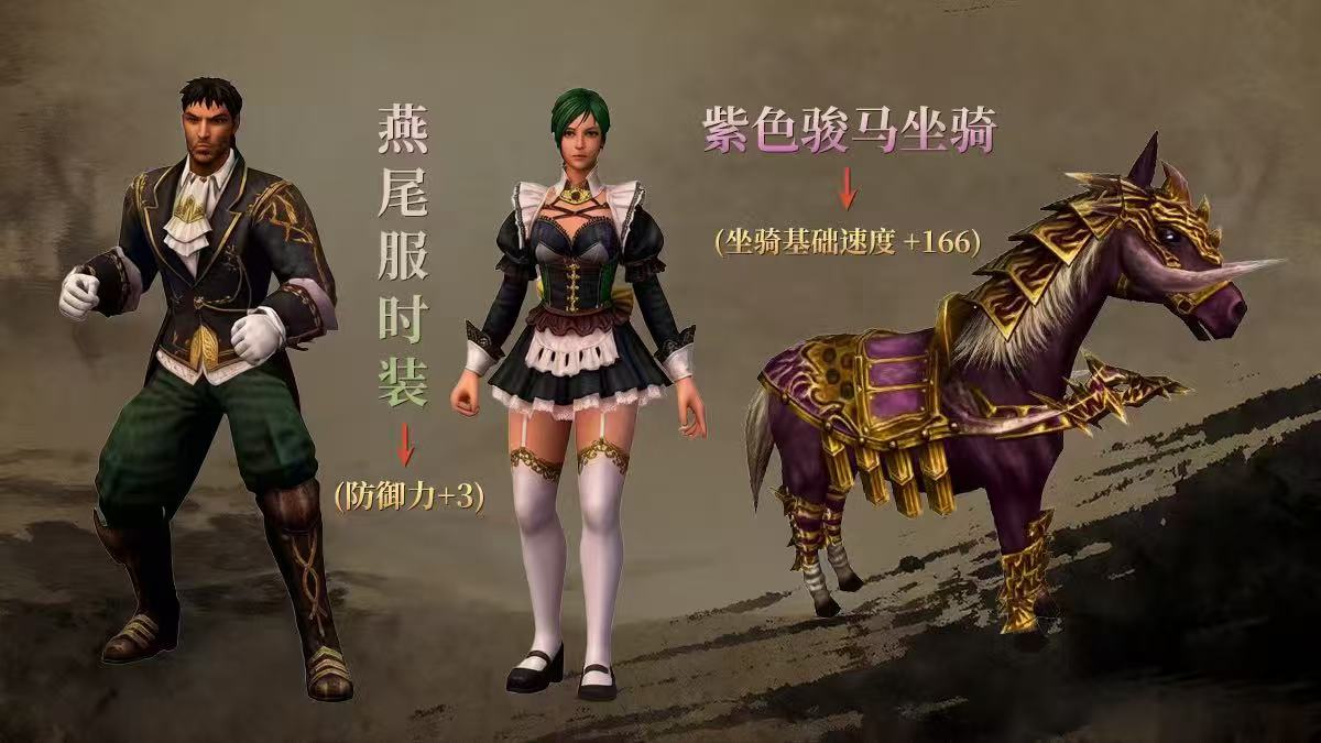 使用后可召唤紫色骏马坐骑; 坐骑基础速度 +166; [可以使用]; 武士 游侠 修罗 法师